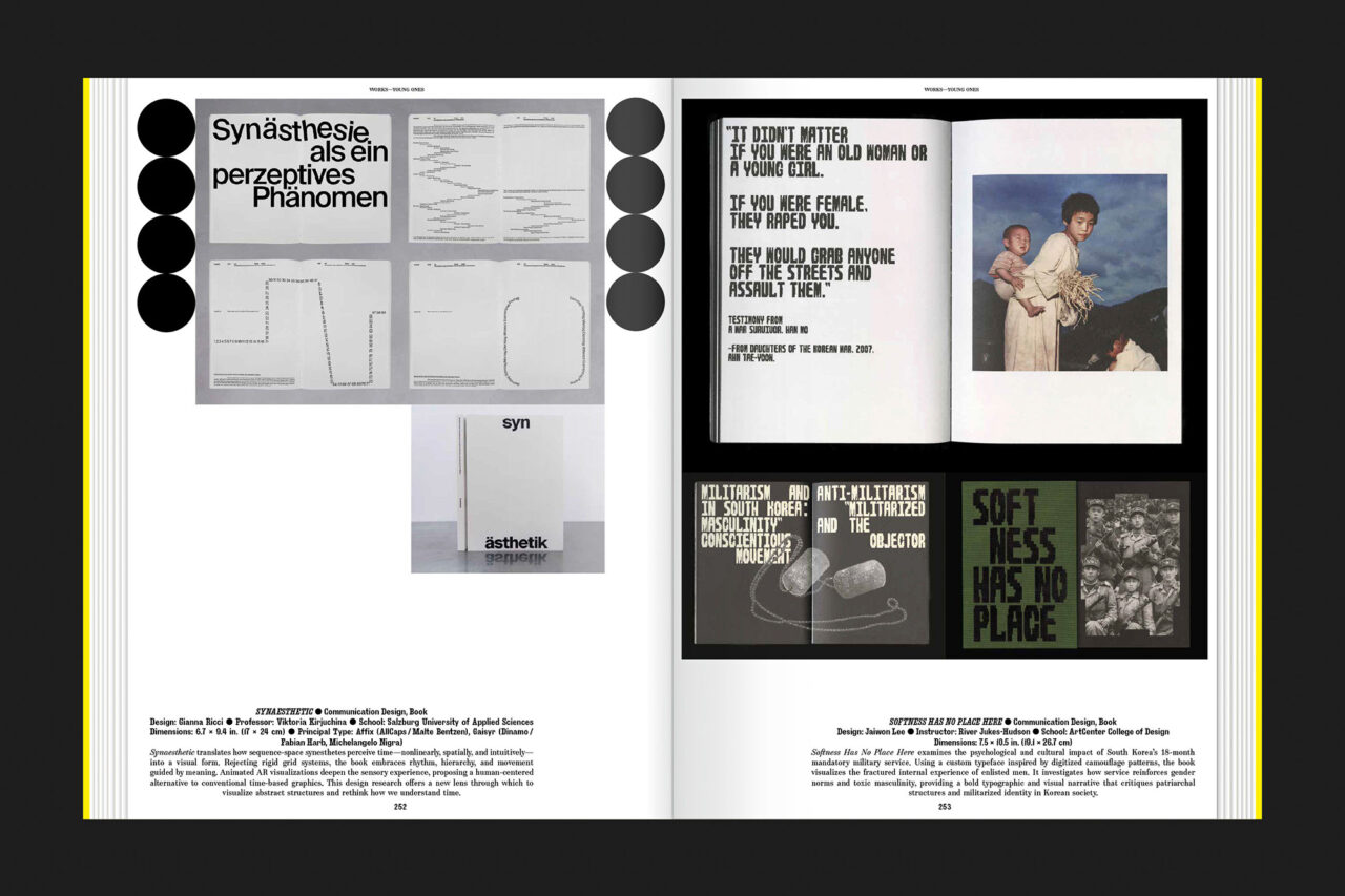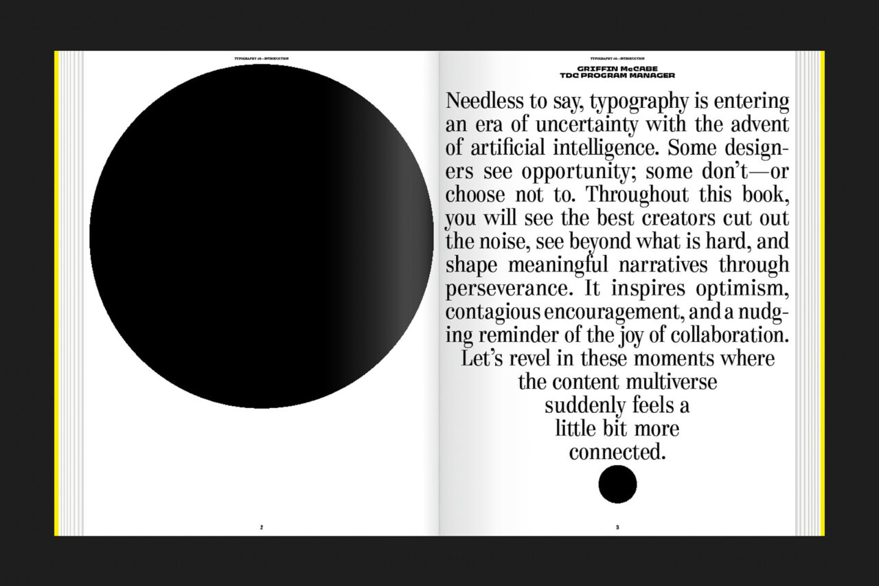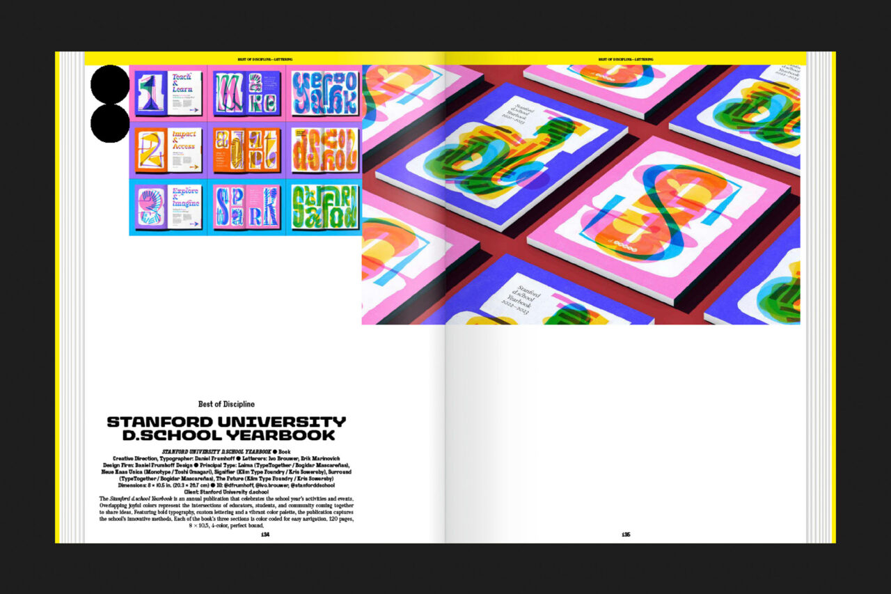 For this edition, with a striking yellow cover, the TDC collaborated closely with independent German publishing house Slanted. Founded by Julia Kahl and Lars Harmsen in 2014, Slanted grew out of a blog that the duo started a decade earlier. They work worldwide with a variety of authors and creatives, publishing magazines and design-related books.