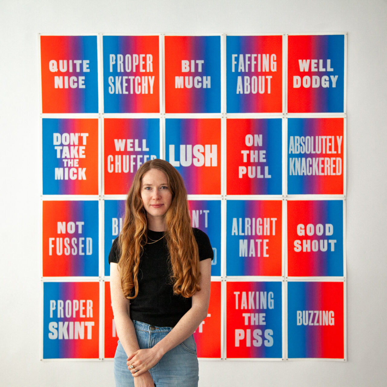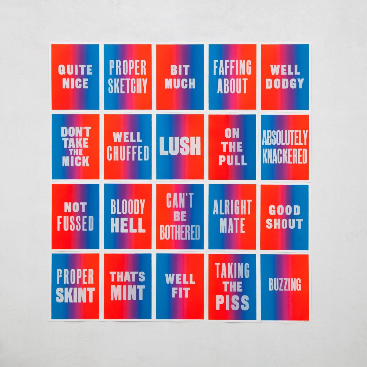 Dwyer’s The British Tongue is a hand-printed letterpress series exploring the English language, with quirky phrases such as ‘Well chuffed’ and ‘faffing about’. These twenty posters, each printed on a Vandercook SP15 press use Fedrigoni Arena Rough 200gsm paper.