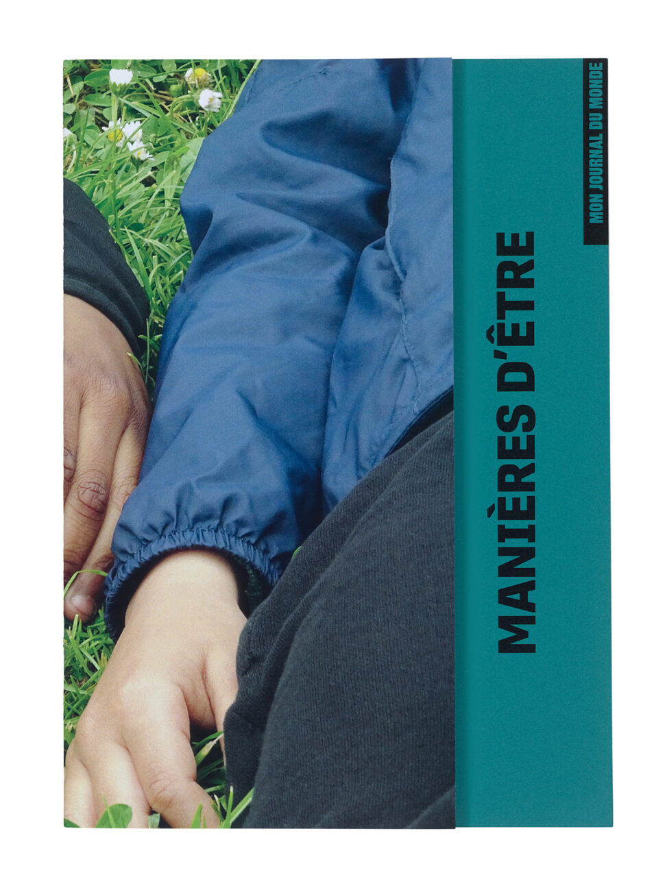 The publication is wire-stitched, which makes possible the narrow outer covers, with a front page that reveals the edition’s title and the Mon Journal du Monde masthead on the wider inner pages. Monochrome pictures on the inside covers show the schoolchildren in action.